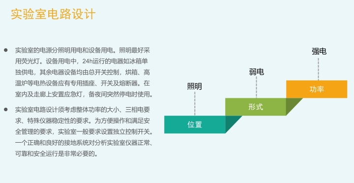 一.實驗室的安全原則:安全性是實驗室裝修建設(shè)的重中之重,實驗室建筑中包含了水、電、氣、暖很多問題,若實驗室設(shè)計不合理會造成實驗室設(shè)備損壞、實驗室火災(zāi)爆炸和實驗室人員中毒等。所以在裝修設(shè)計時,空間的結(jié)構(gòu)規(guī)劃是非常重要的。