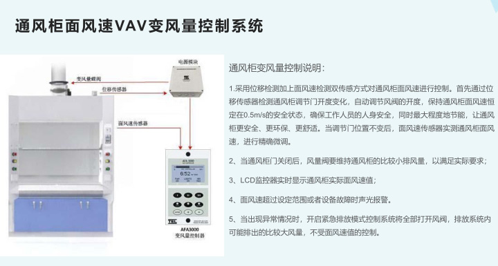 在大型通風系統(tǒng)中,如果采用單臺排毒柜獨立的定風量排風方式,會導致排風管道太多,管井尺寸不夠用或外墻全是管道不美觀,一次性投資大。如果采用多臺通風設(shè)備運用一個定風量通風系統(tǒng),雖然一次性投資減少了,但是運行不節(jié)能,在其中一些通風設(shè)備不使用時,其他通風設(shè)備的排風量將加大甚至超出正常排風量,影響實驗操作,而且風機運行費用也很高,存在一定的弊病。